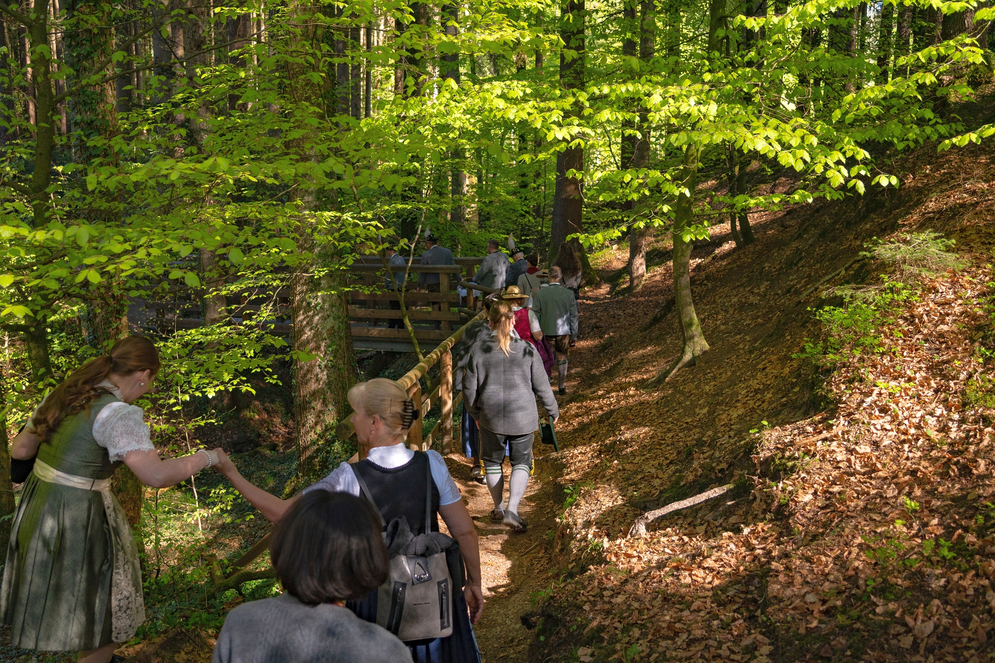 „27. April: Aufgrund der Wiedererstellung des Kreuzwegs von Maxhofen nach Kleinhöhenrain wurde von den 18 Vereinen des Altlandkreises beschlossen, einmal im Jahr den Kreuzweg zu gehen. Es war dies ein großer Erfolg. Es waren an die 500 Trachtler, davon 200 Jugendliche dabei.“