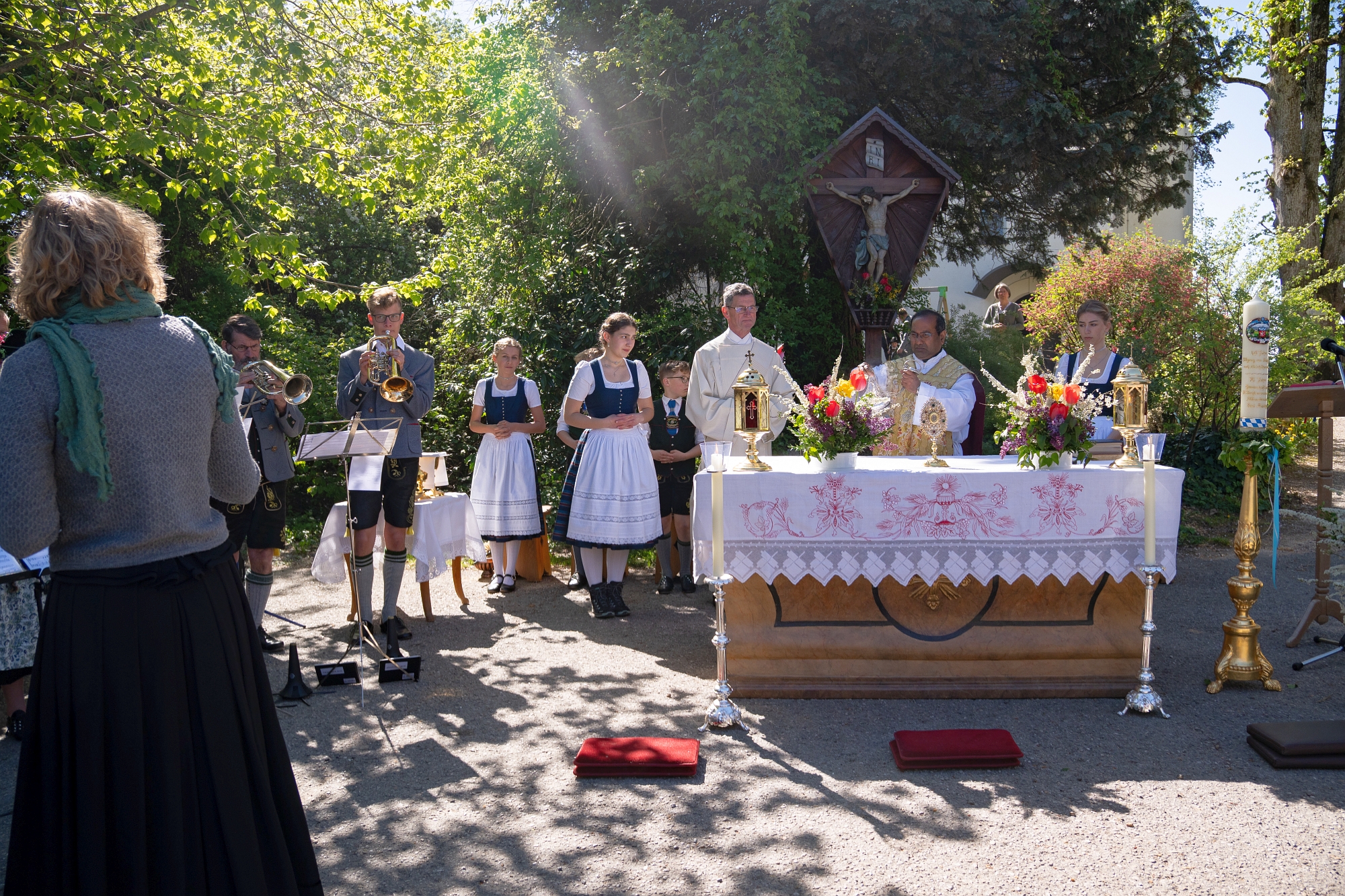 In Kleinhöhenrain war dann wieder feierlicher Gottesdienst mit Pater Banda. Wie schon vom Anfang an gestaltete die Höhenrainer Blasmusik die Messfeier musikalisch.