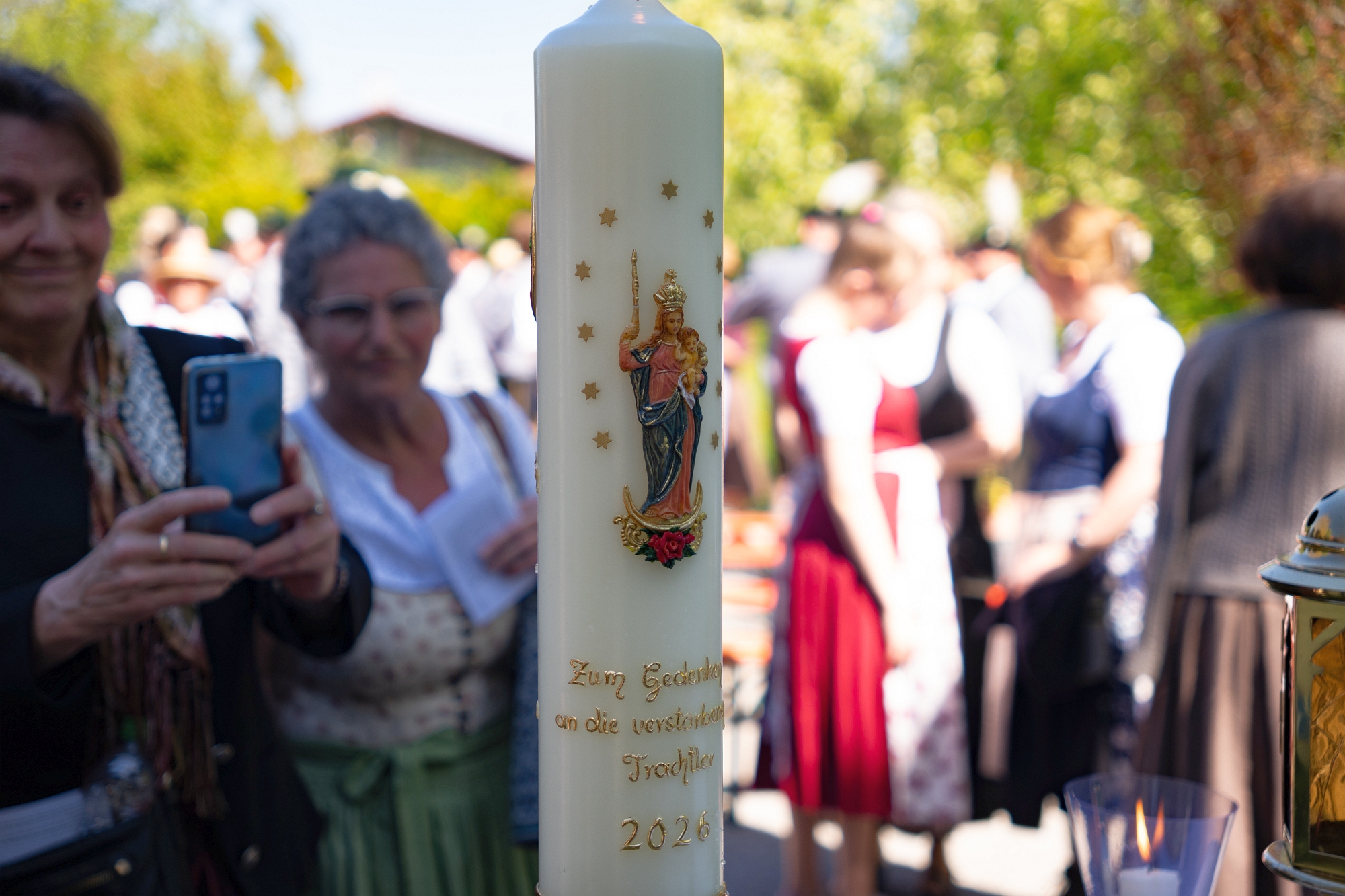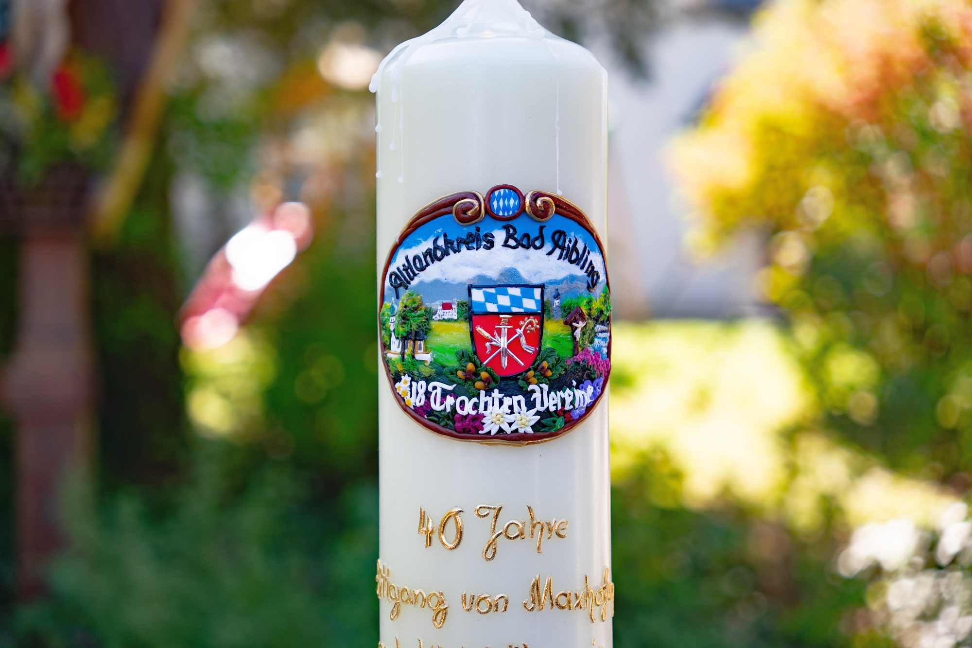 Heuer zum 40. Jubiläum waren wieder sehr viele Teilnehmer gekommen, die betend den Berg hinauf zogen. Zum Dank und zur Erinnerung war eine große Kerze in Auftrag gegeben worden, die an der Spitze des Zuges mitgetragen wurde.