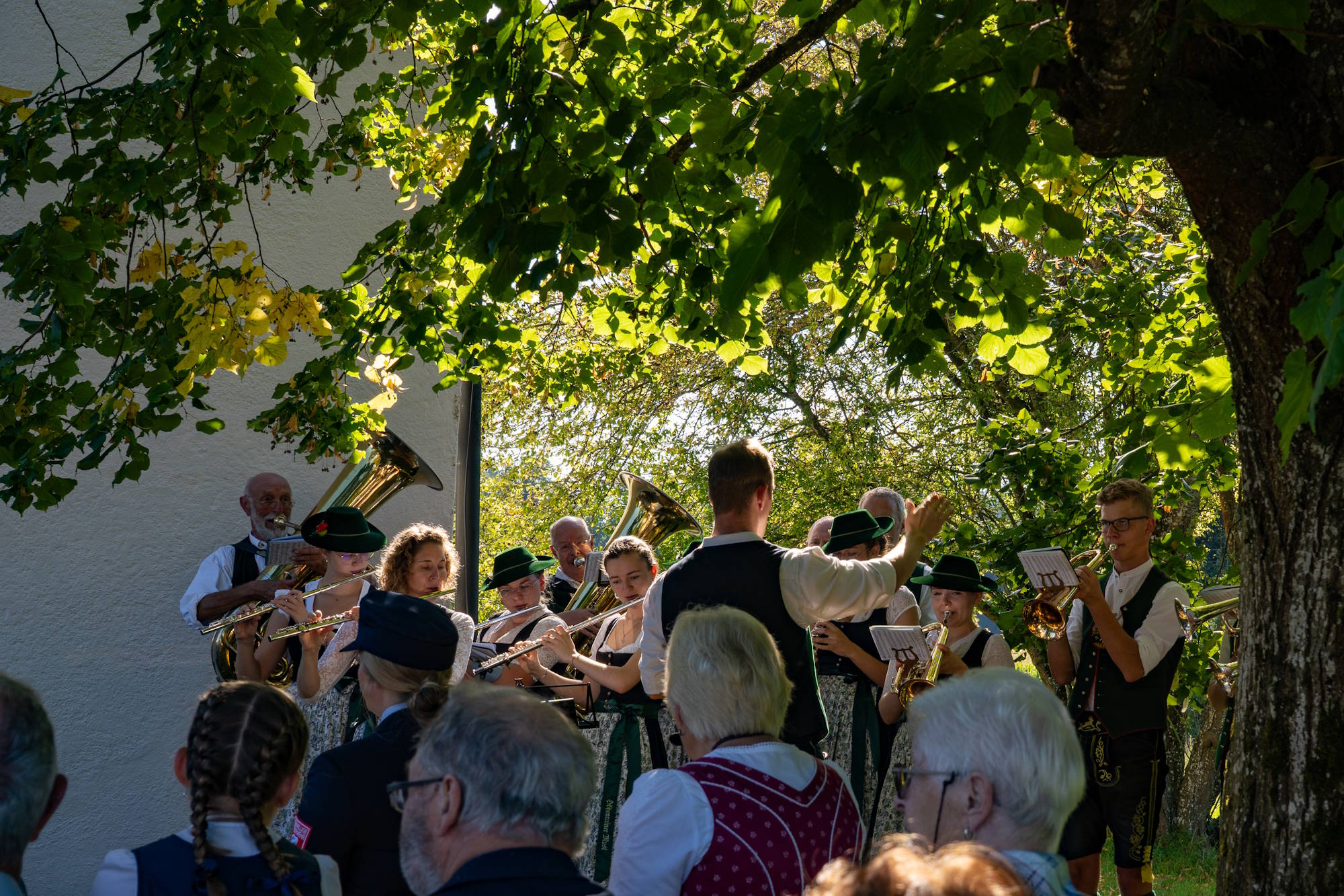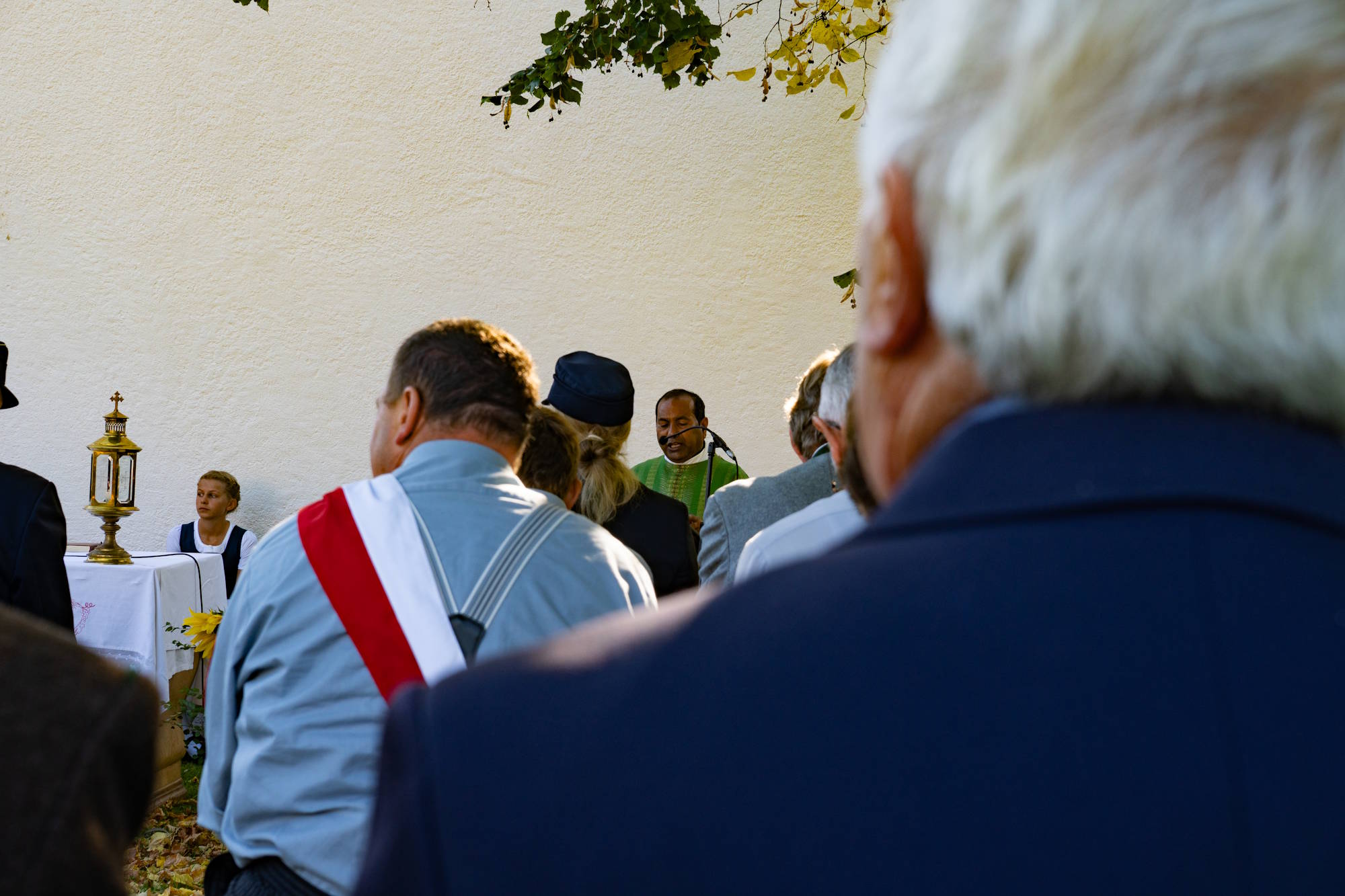 Dort auf der malerischen Wiese vor der Kirche zelebrierte Pater Banda den Festgottesdienst, begleitet von den festlichen Klängen der Blaskapelle Großhöhenrain.