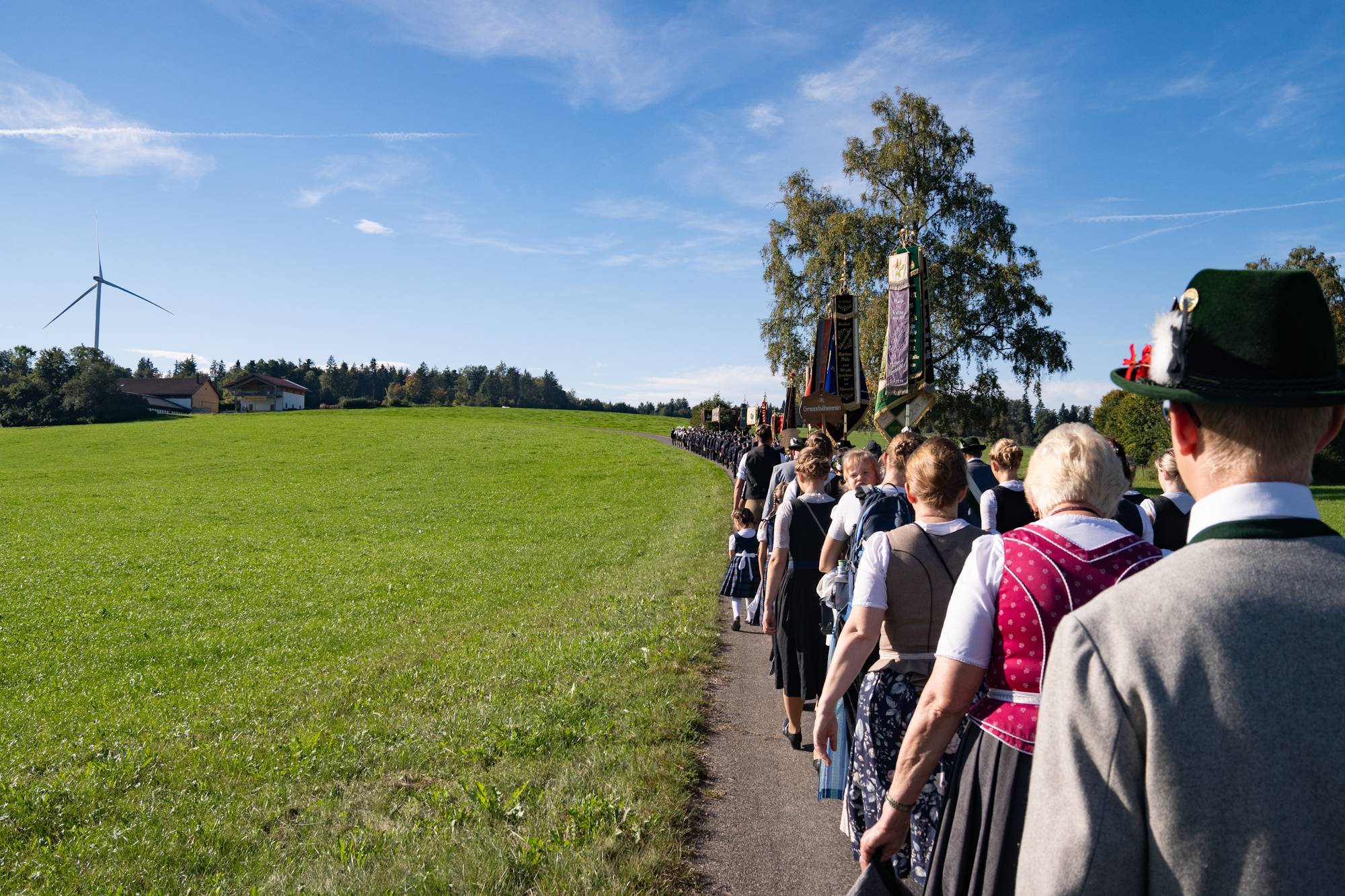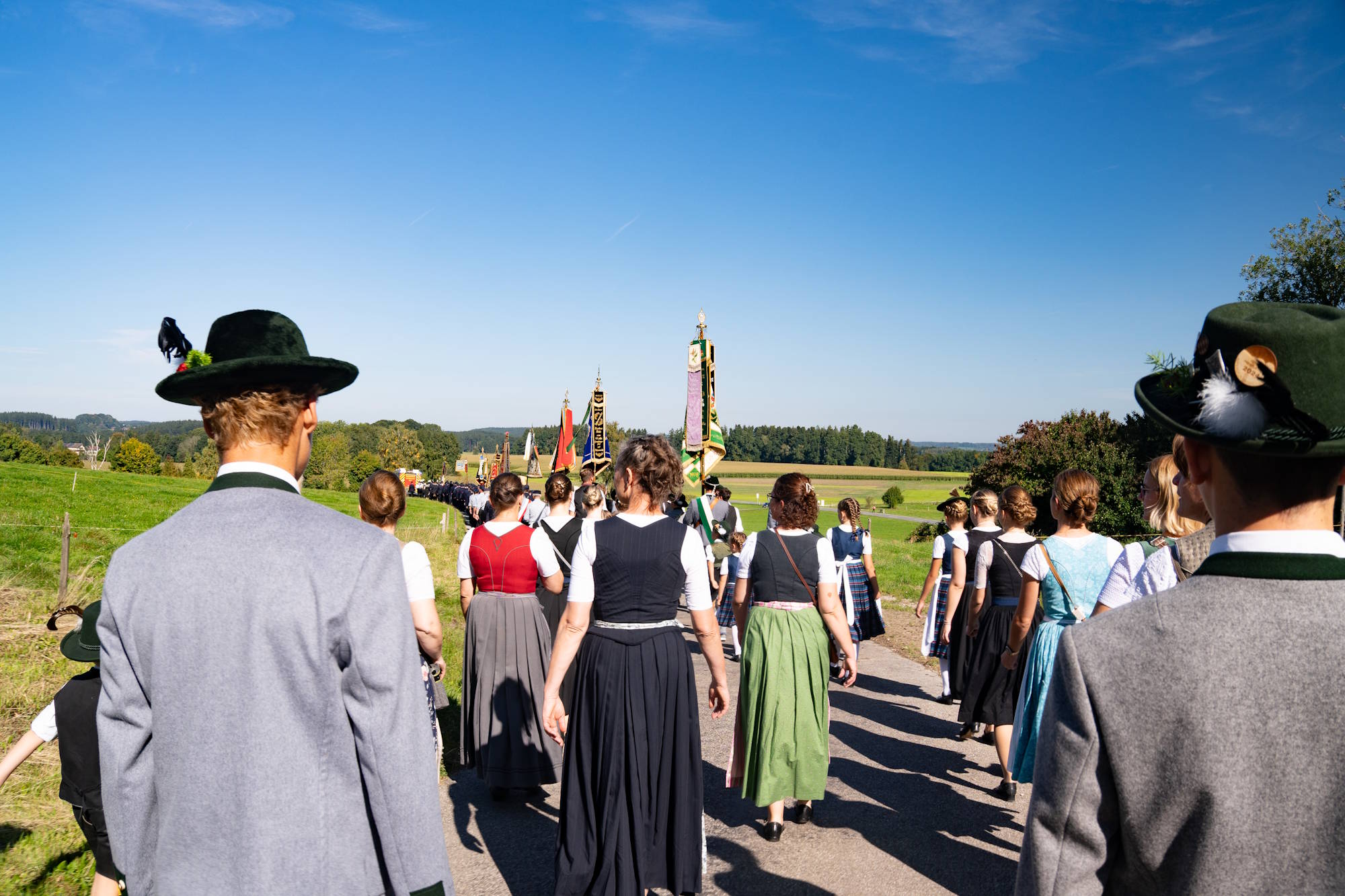 Am Ende des Gottesdienstes war die Fahrzeugweihe und das neue Fahrzeug führte danach den Zug zurück nach Krügling an.