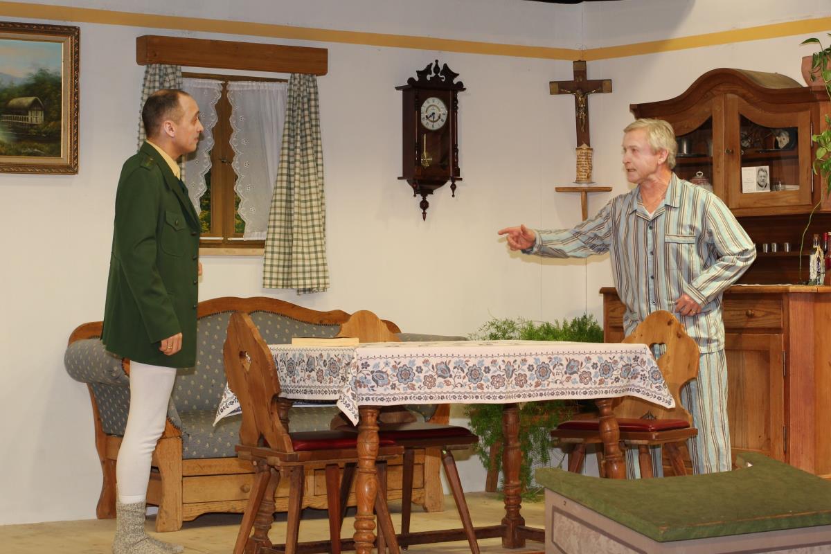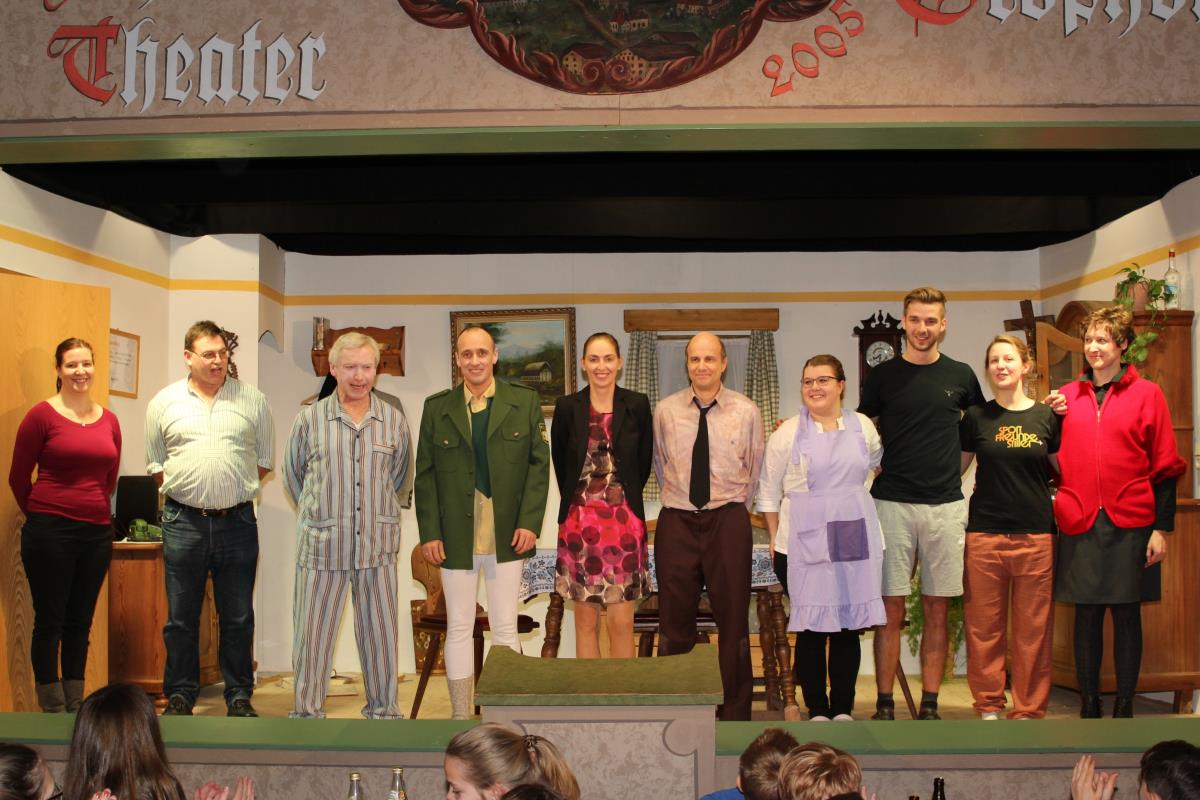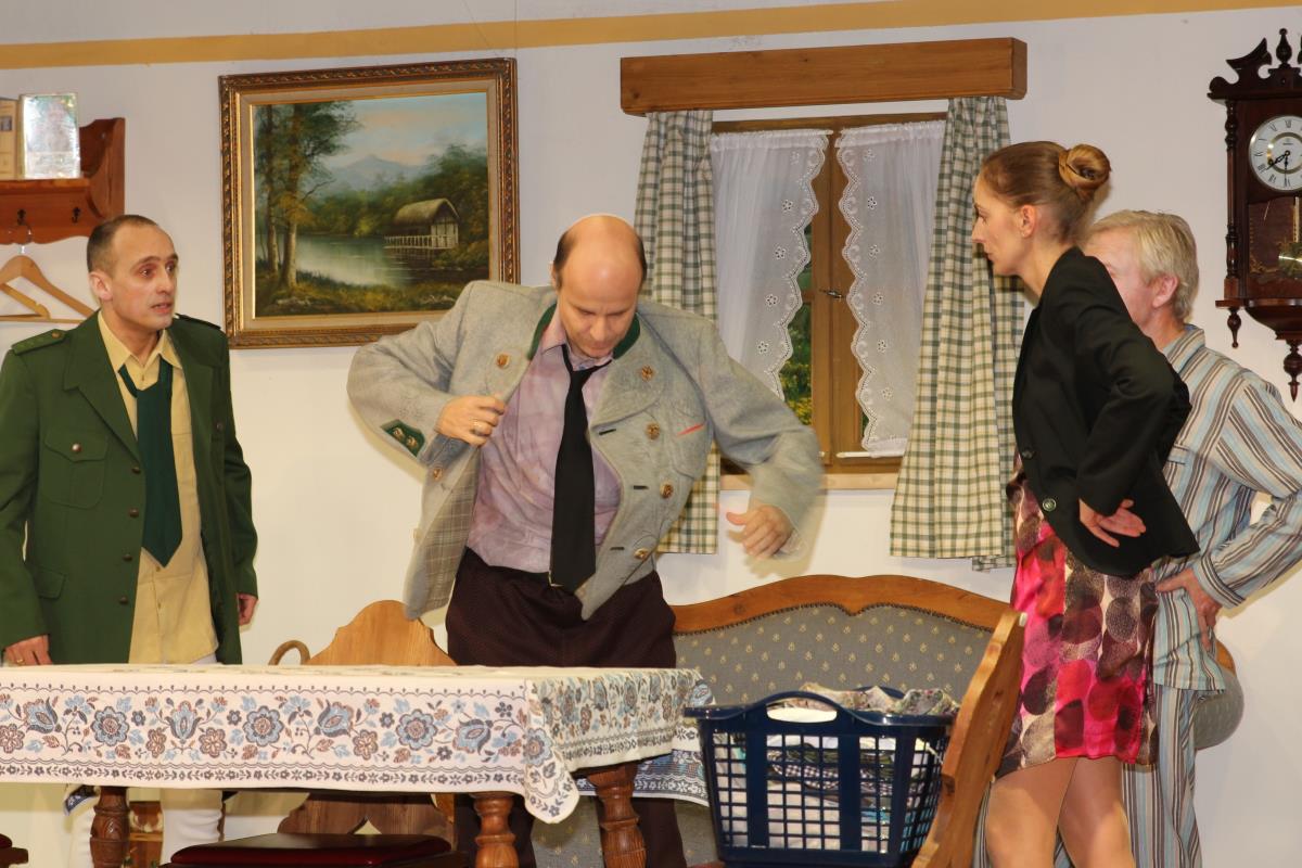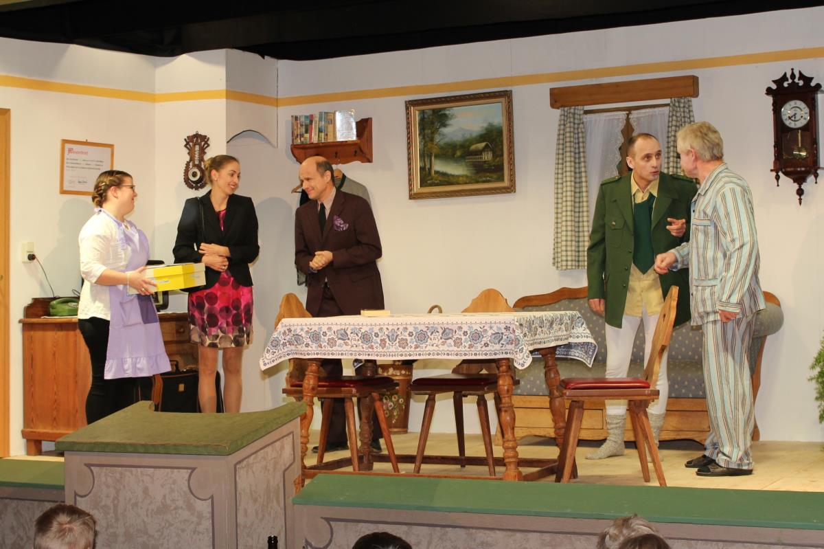 „Da Himme wart ned“ von Markus Scheble und Sebastian Kolb Begrüßung durch Vorstand Robert Stahuber Stelzl erfährt frisch verstorben, dass er erst moi zruck muass Emmeran führt fia Tochter Anna de Schreinerei weida Stelzl erklärt Bömmerl, dass er a gstorben is Die erbschleichende Verwandtschaft trifft ei Da Froschmeier lodt sich zum Kaffee ei De Froschmeiers findn den Lotto-Briaf und de Geister kinnan nix doa De Froschmeiers suachan den Lottoschein Schellnberger Resi hilft Anna Haushälterin Finni will mit Emmeran Kontakt zum toten Bömmerl aufnehmen Froschmeier "erbt" die Joppn (mit dem Lottoschein in da Taschn) Resi als Medium De Froschmeierin bestellt a Schönheits-OP De Geister erschreckn de Froschmeiers Panisch gebn sie ois zua De Froschmeiers werdn aussegschmissn Resi sogt da Anna de Abschiedsworte vo ihram Vadda Bömmerl De ganze Gruppn Fotos: Michael Hofstetter