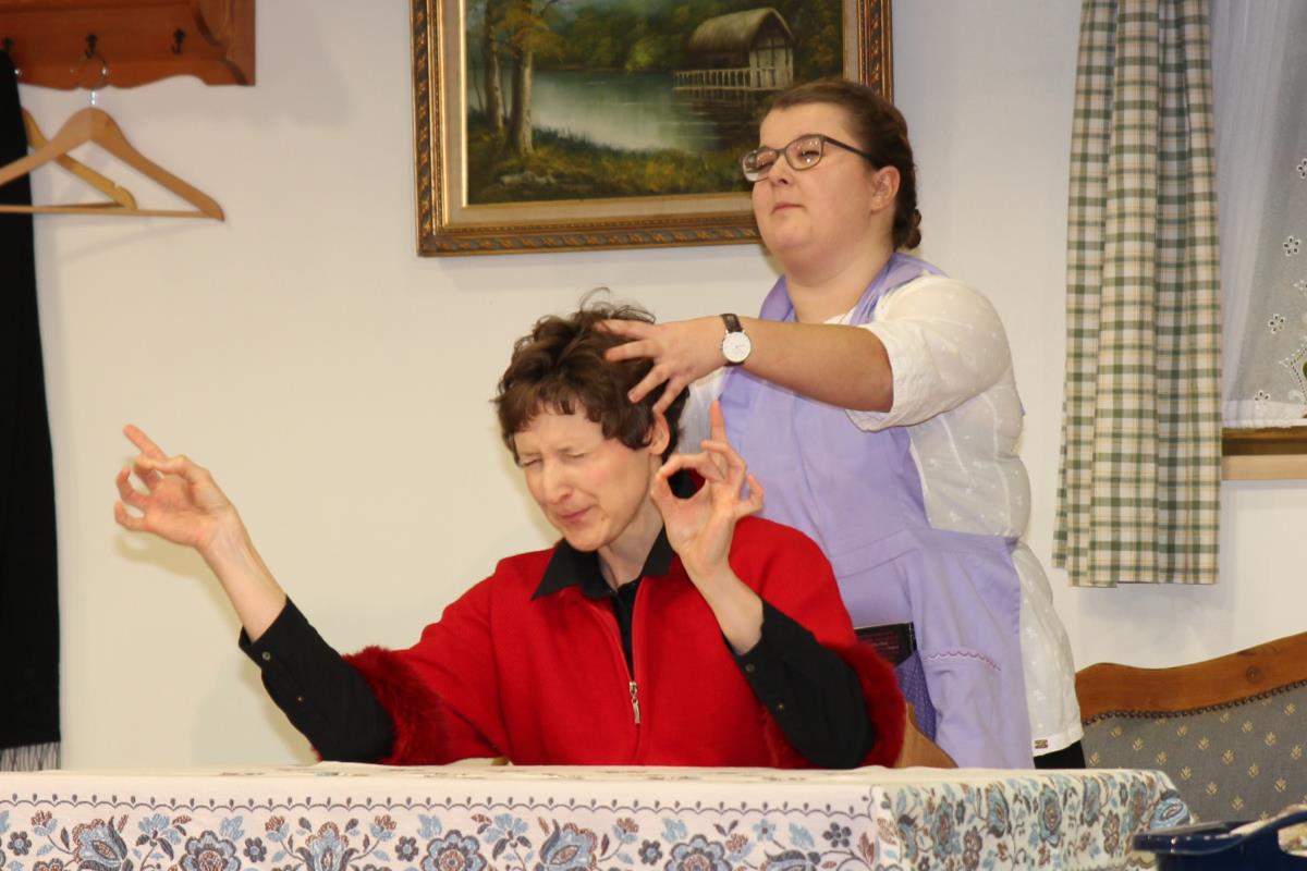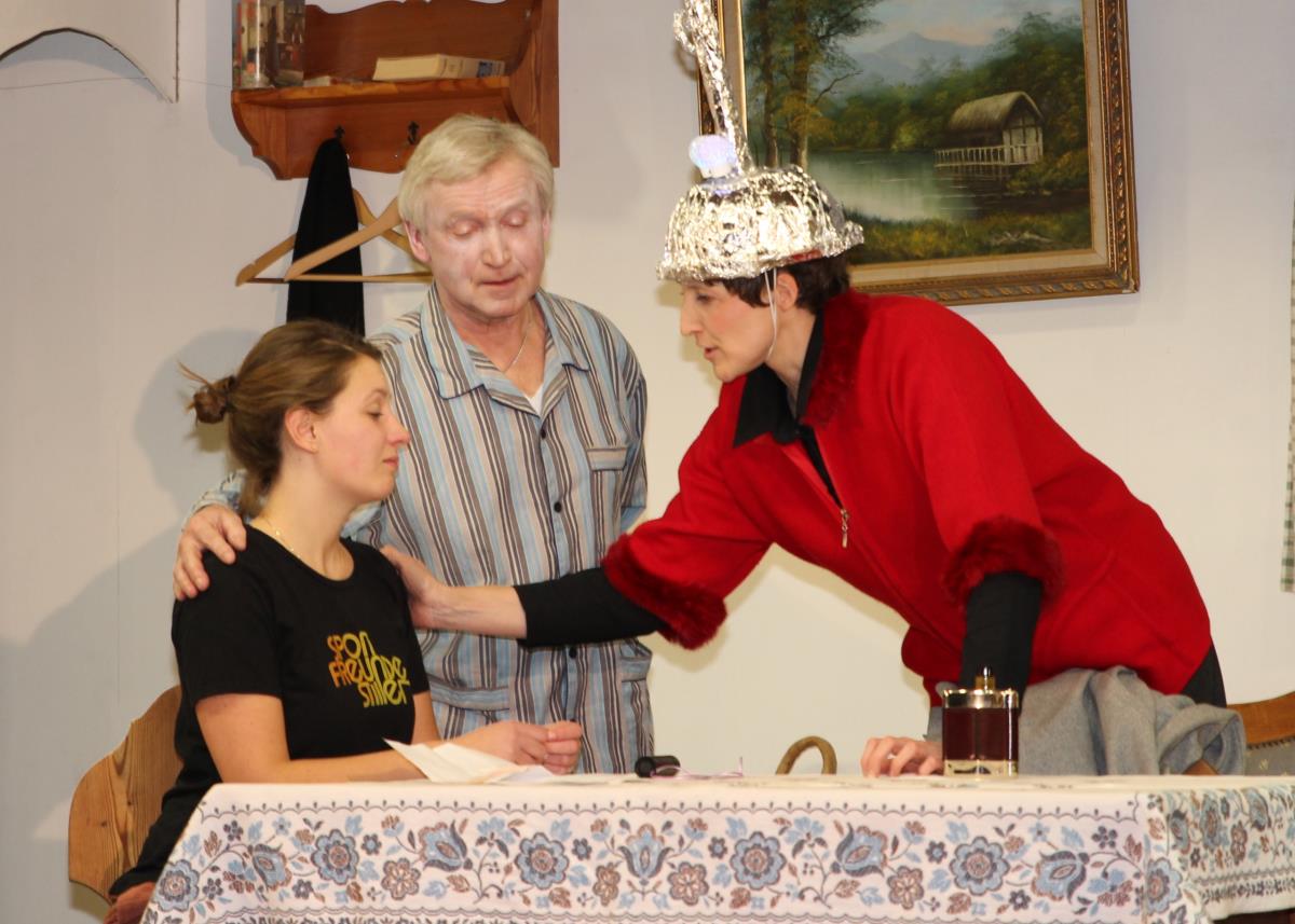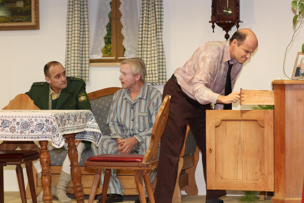 „Da Himme wart ned“ von Markus Scheble und Sebastian Kolb Begrüßung durch Vorstand Robert Stahuber Stelzl erfährt frisch verstorben, dass er erst moi zruck muass Emmeran führt fia Tochter Anna de Schreinerei weida Stelzl erklärt Bömmerl, dass er a gstorben is Die erbschleichende Verwandtschaft trifft ei Da Froschmeier lodt sich zum Kaffee ei De Froschmeiers findn den Lotto-Briaf und de Geister kinnan nix doa De Froschmeiers suachan den Lottoschein Schellnberger Resi hilft Anna Haushälterin Finni will mit Emmeran Kontakt zum toten Bömmerl aufnehmen Froschmeier "erbt" die Joppn (mit dem Lottoschein in da Taschn) Resi als Medium De Froschmeierin bestellt a Schönheits-OP De Geister erschreckn de Froschmeiers Panisch gebn sie ois zua De Froschmeiers werdn aussegschmissn Resi sogt da Anna de Abschiedsworte vo ihram Vadda Bömmerl De ganze Gruppn Fotos: Michael Hofstetter